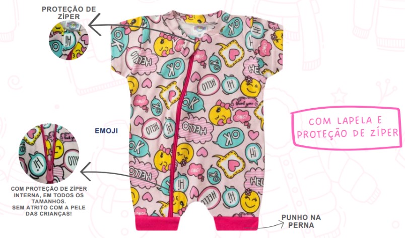 Macacão Bebê Menina Curto Carinha De Emoji