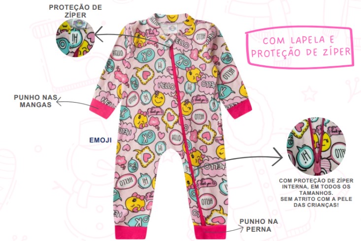 Macacão Bebê Menina Longo Carinha De Emoji